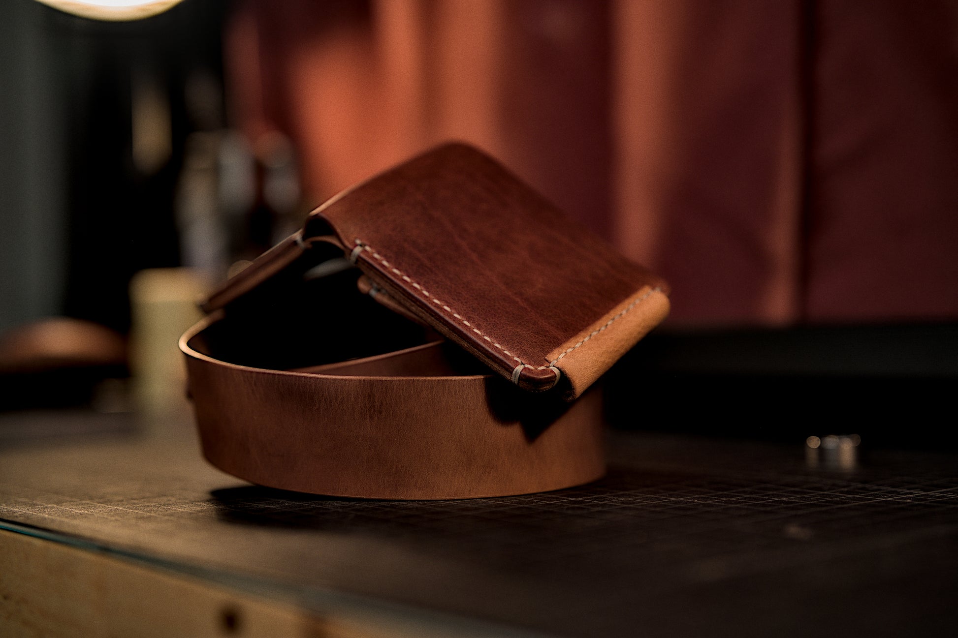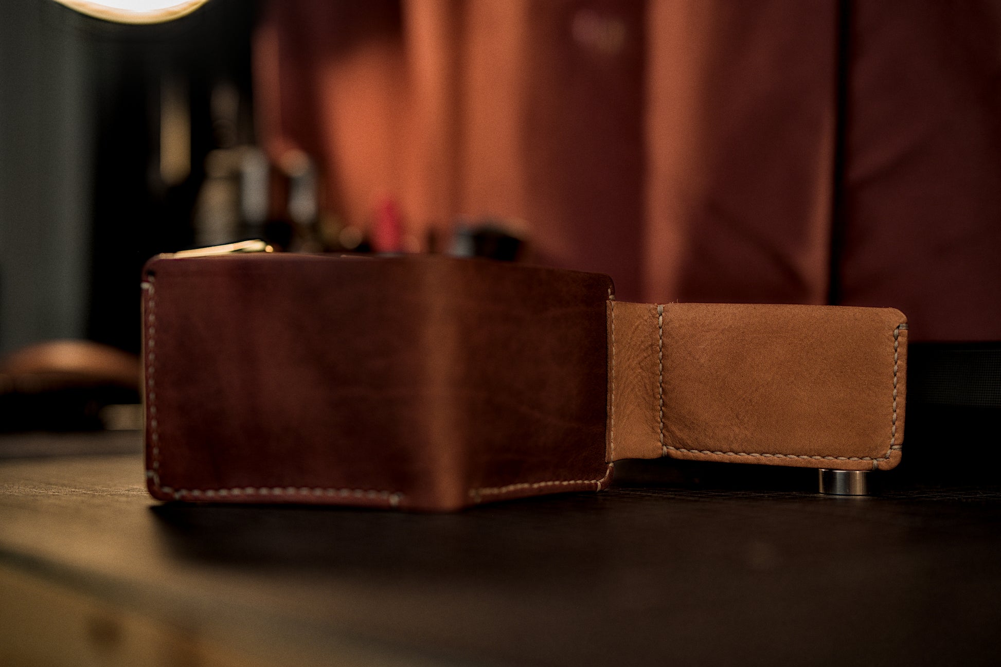 Eight card pockets, two hidden pockets and an unlined cash slot with an optional id slot